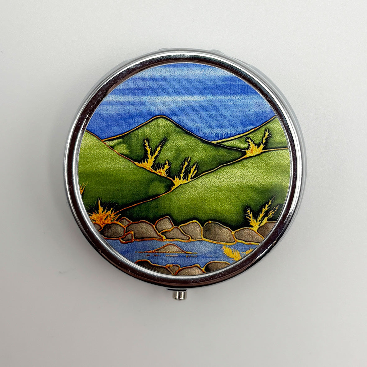 Lovely little pill box featuring a photo taken from an original silk painting of Dartmoor.