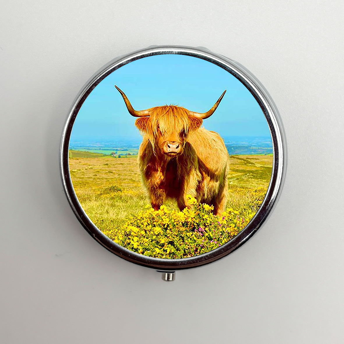 Lovely little pill box featuring a photo of a Highland Cow on Dartmoor, taken by local photographer John McNulty.